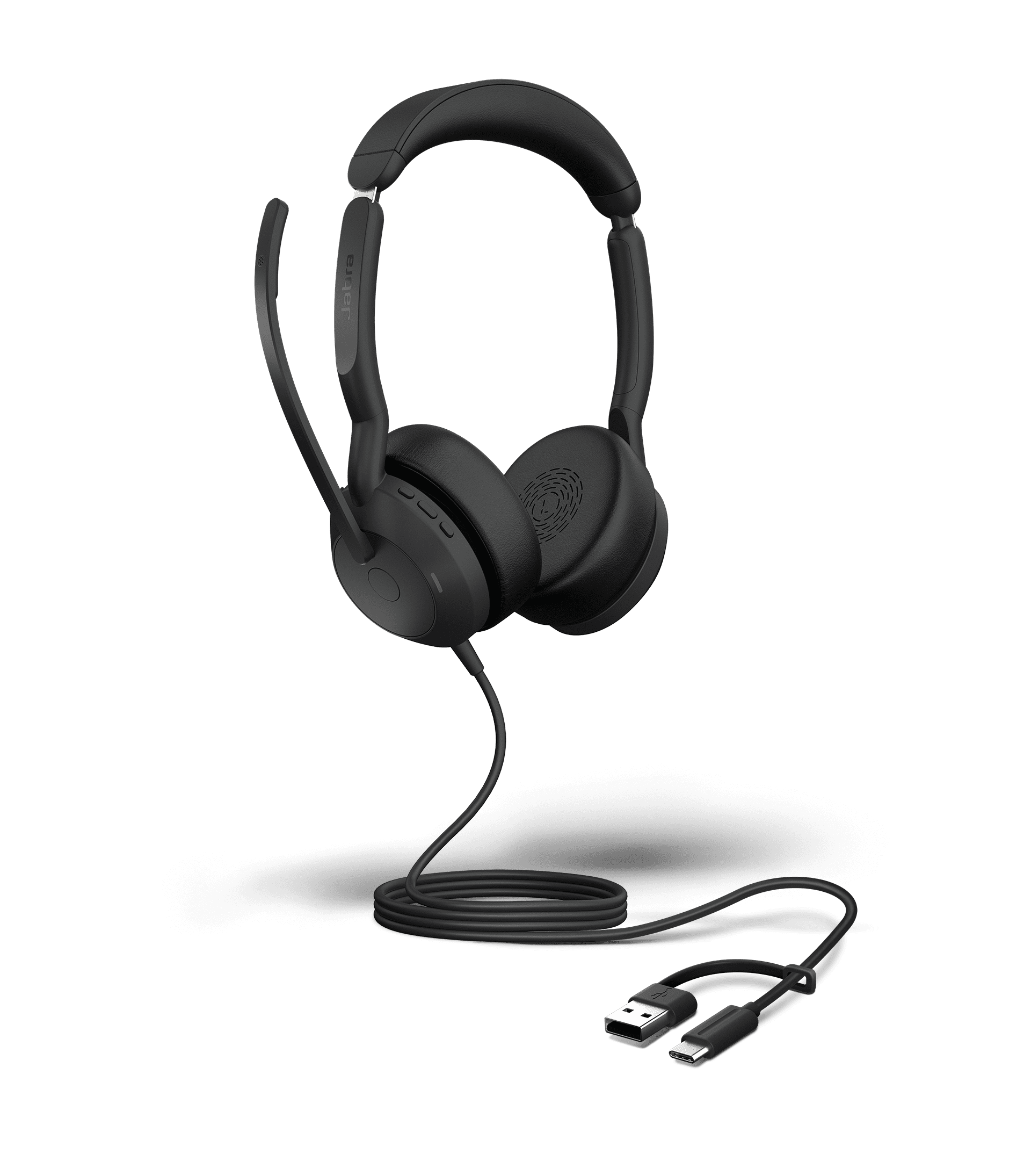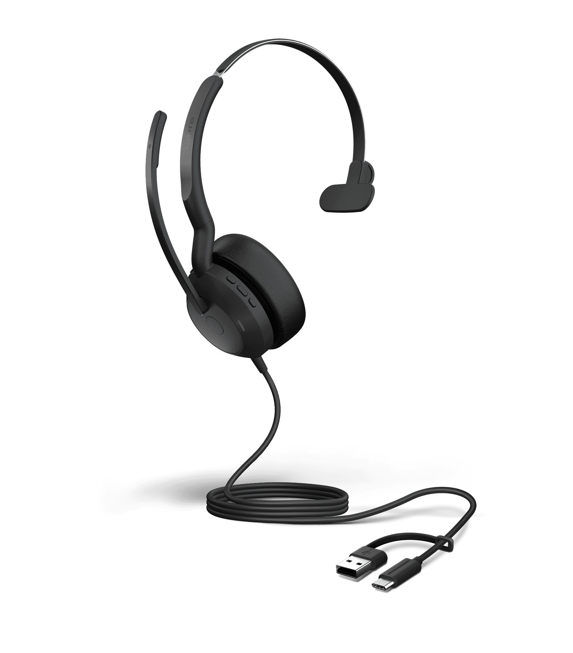 Jabra Evolve2 50 est conçu pour un confort maximal avec la technologie Jabra Air Comfort et une double connectivité rapide. Casque filaire professionnel avec ANC.
